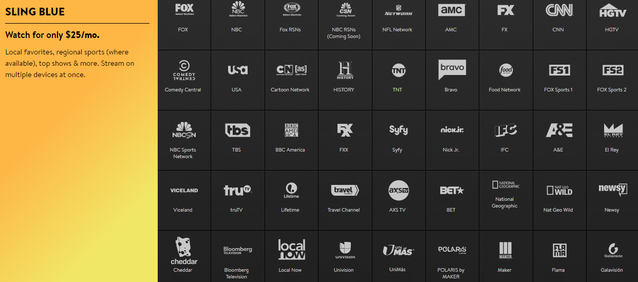 Pmt has a channel lineup available which includes premium channels such as hbo, starz and showtime.