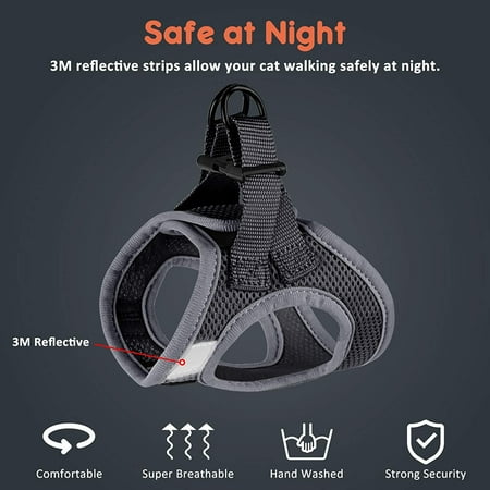 Escape proof dog harness no pull reflective breathable cat walking harness vest. The adjustable clips on the houndnine cat harness allow tightening of areas that might allow for wiggle room in smaller cats too. Cat harness escape proof vest harness with reflective strap soft mesh adjustable cat walking jacket for kitten. A cat harness no escape can be a safe solution to take your cat outside your house. The puptek escape proof cat harness is suitable for all cats and comes in three sizes;